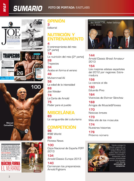 Adelantamos un avance y la portada de la edición número 359 de la revista especializada Muscle&Fitness que ya está disponible en los quioscos. Una edición con seguimiento a la Copa Nacional y avance del Arnold Classic Europa 2013 entre otros artículos de interés.