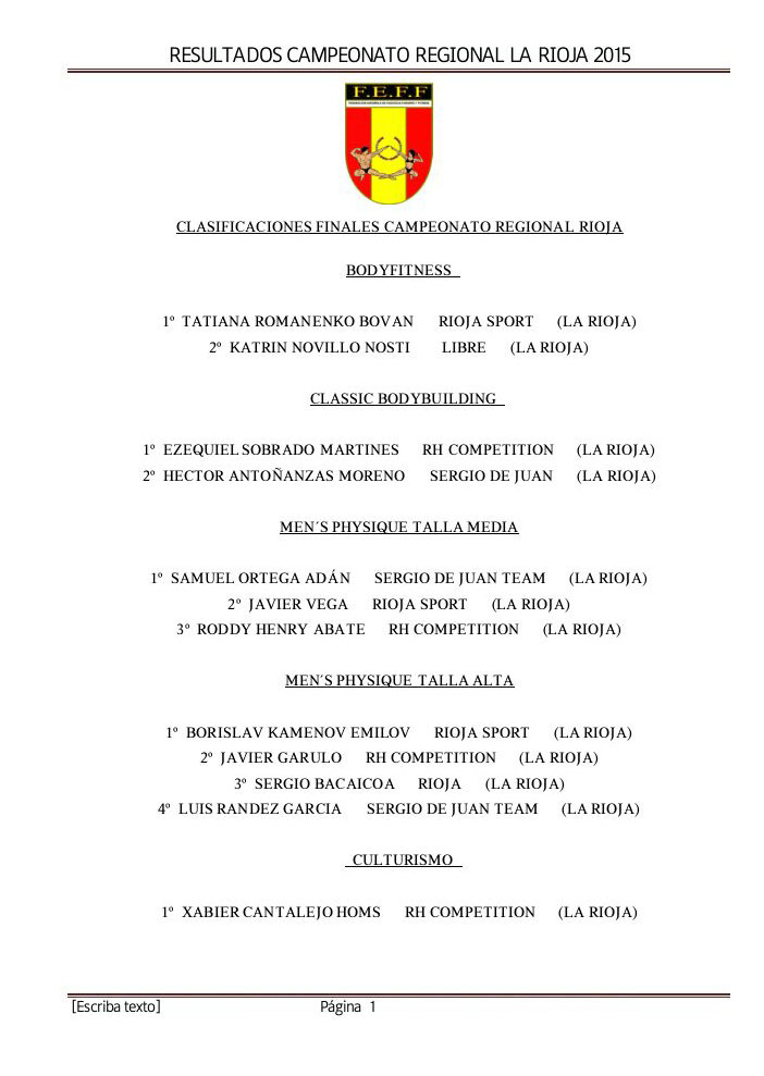 Este fin de semana La Rioja debutó con su campeonato en el Calendario de Competiciones de la Federación Española. Acompañamos imagen de las clasificaciones oficiales del Regional de la Rioja y del Interterritorial disputado el mismo día. Así como de algunos de los podiums disputados.