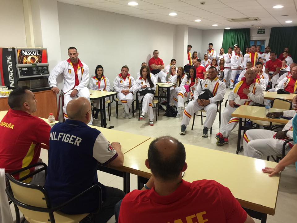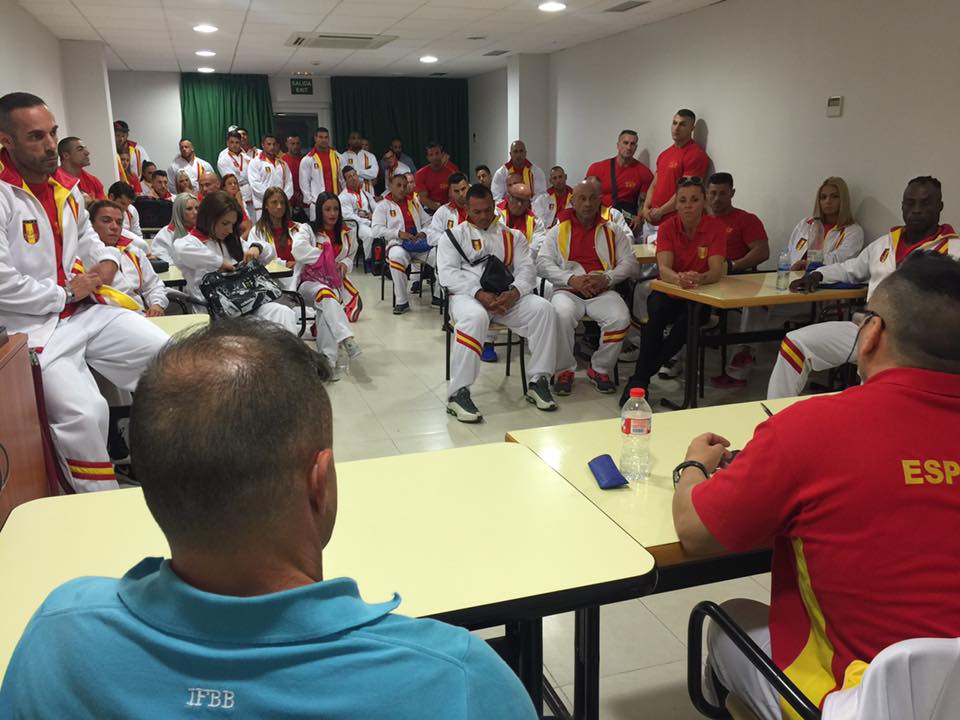 Con el pertinente pesaje y tallaje los más de 1200 competidores venidos de toda Europa, arranca en Santa Susanna el prometedor Campeonato de Europa EBFF IFBB. Nuestra selección al completo se reunió hoy en las instalaciones del hotel de concentración para la reunión y directrices por parte de nuestro seleccionador Rafael Ovejero al frente de la selección y las palabras de ánimo de nuestro presidente José Ramos junto al resto de miembros y delegados de la expedición española.