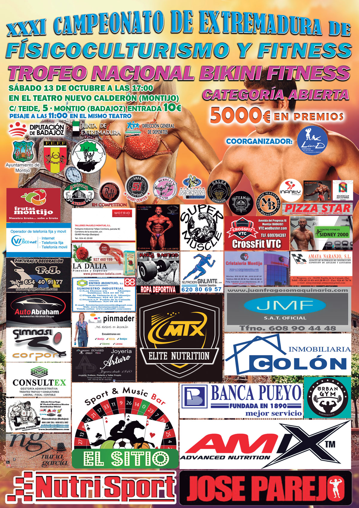 El día 13 de octubre del 2018 se celebrará en Montijo la XXXI edición del Campeonato de Extremadura, junto con un Torneo Nacional Bikini con 5.000€ en premios a repartir entre las diferentes categorías del Campeonato de Extremadura y el Torneo Nacional Bikini, el reparto de premios será el siguiente: