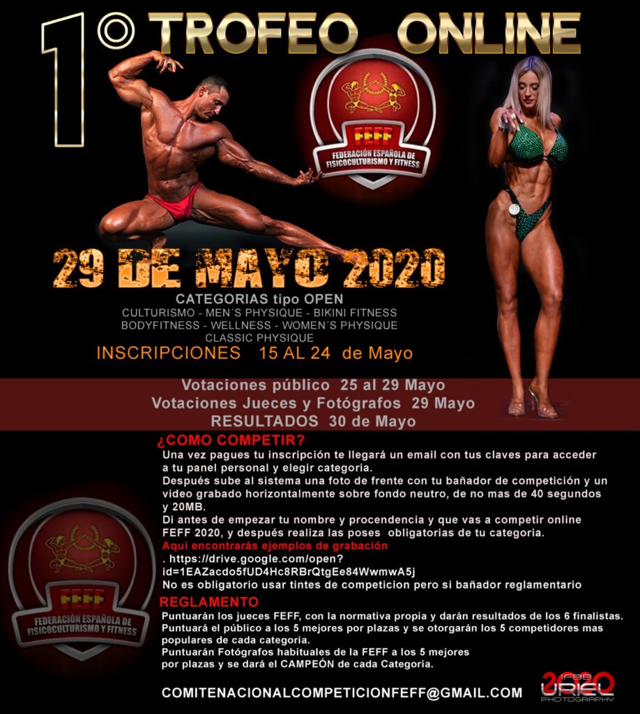 Para facilitar la información sobre el evento Online convocado desde nuestra Federación, hemos editado este video a raíz de un directo de Instagram para que se entienda algo mejor y paso por paso todo el proceso para participar en nuestro primer Trofeo Online Nacional FEFF – IFBB España.