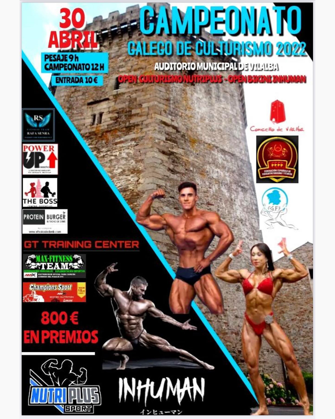 El municipio lucense de Villalba acogerá el sábado 30 de abril a partir de las 12:00 h la nueva edición del Campeonato Regional de la territorial Gallega que este año además traerá consigo dos opens regionales que repartirán 800 € en metálico entre las modalidades de Culturismo y Bikini. (Open Nutriplus de Culturismo y Open Inhuman de Bikini).