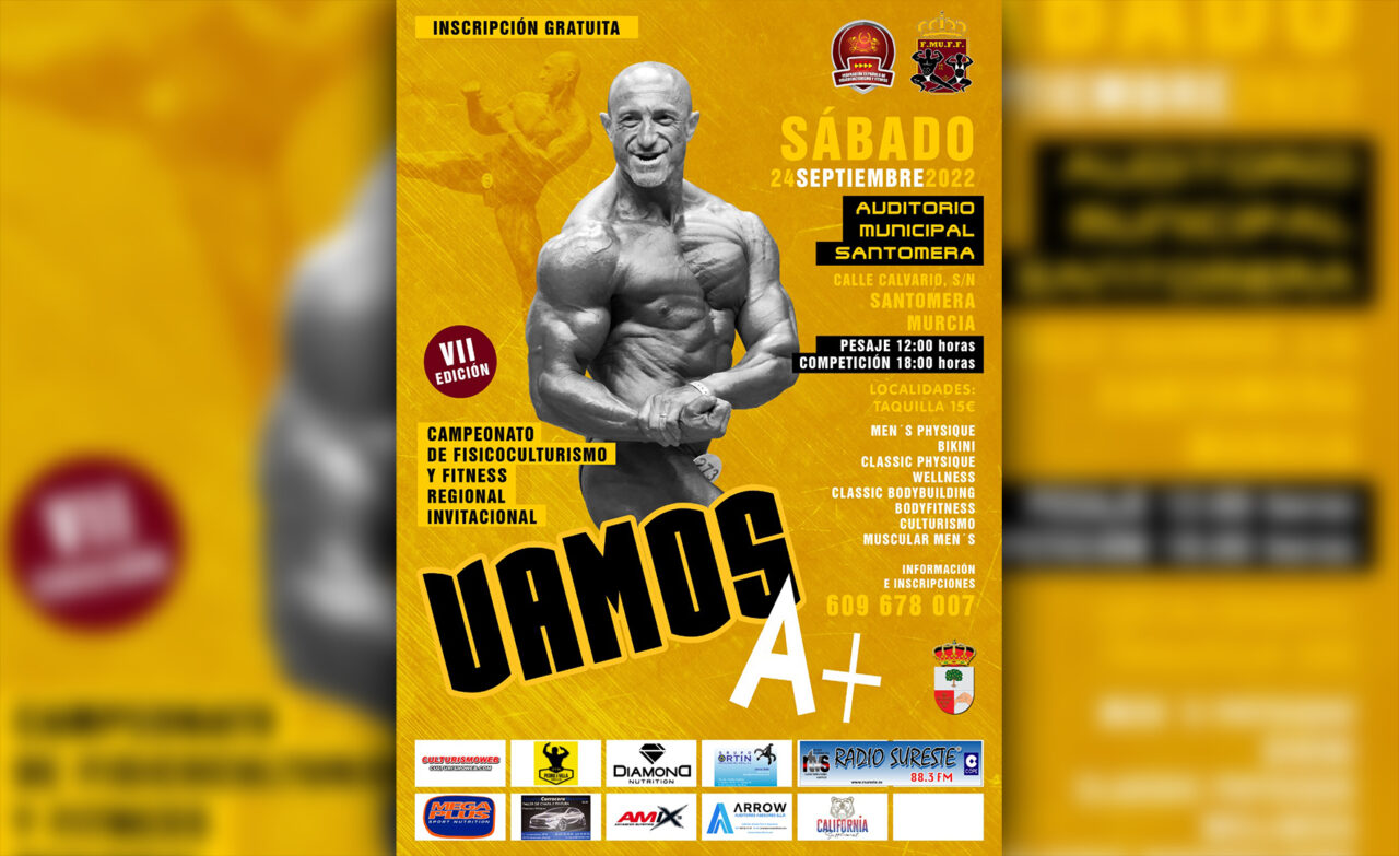 Ceferino Fernández y la territorial murciana nos presentan la nueva edición (séptima) del Campeonato de Fisicoculturismo  y Fitness Invitacional Vamos A+ que se celebrará el sábado 24 de septiembre en el Auditorio Municipal de Santomera. La competición será a las 18:00, pero el pesaje arrancará desde las 12:00 h.