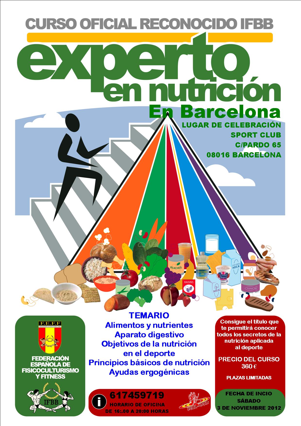 Otra nueva promoción en cataluña, esta vez el curso oficial de Nutrición y Suplementación deportiva de la Federación Española, que comenzará en el mes de noviembre, el sábado 3 en el ...