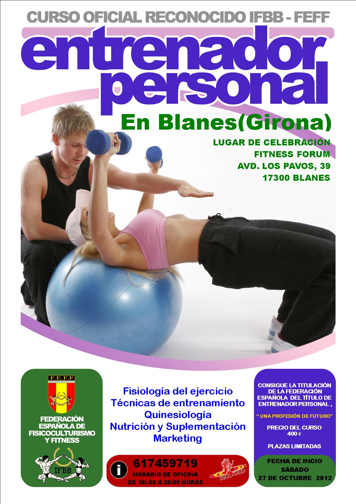 Simultaneamente al celebrado en Barcelona, también en Blanes (Girona) la territorial de Cataluña lanza uno de los cursos más demandados de la Federación Española, el curso oficial de Entrenador Personal de ...