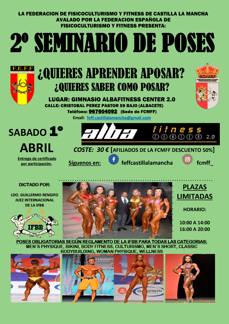 La territorial de Castilla La Mancha convoca para el próximo sábado 1 de abril la segunda edición del seminario de poses obligatorias IFBB, donde se explican con detalle la ejecución correcta ...